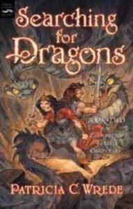 Just by going off the blurb on the back of the book, you would think Cimorene would be the main character in this, but she’s not! Nope, we have Mendanbar, King of the Enchanted Forest. When he comes across a patch of the Enchanted Forest that has lost its magic, he sets out to find out what happened. And in searching for answers, he discover that Kazul, the King of the Dragons, has been kidnapped! So he and Cimorene set out to find her.