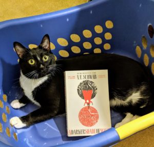 Kell is an Antari – a person with powerful magic in a world where magic is not as plentiful as it once was. There are four worlds, and four Londons, each with varying levels of available magic and niceness. He lives in Red London, with a happy populace, a good king and queen and prince, and fairly free-flowing magic. Grey London is the grimdark nonmagical version, White London is full of scary vicious people fighting for scraps of magic, and Black London was sealed off from the others because the magic had gone wrong. Only the Antari can move between worlds, where once the doors were open and freely used.