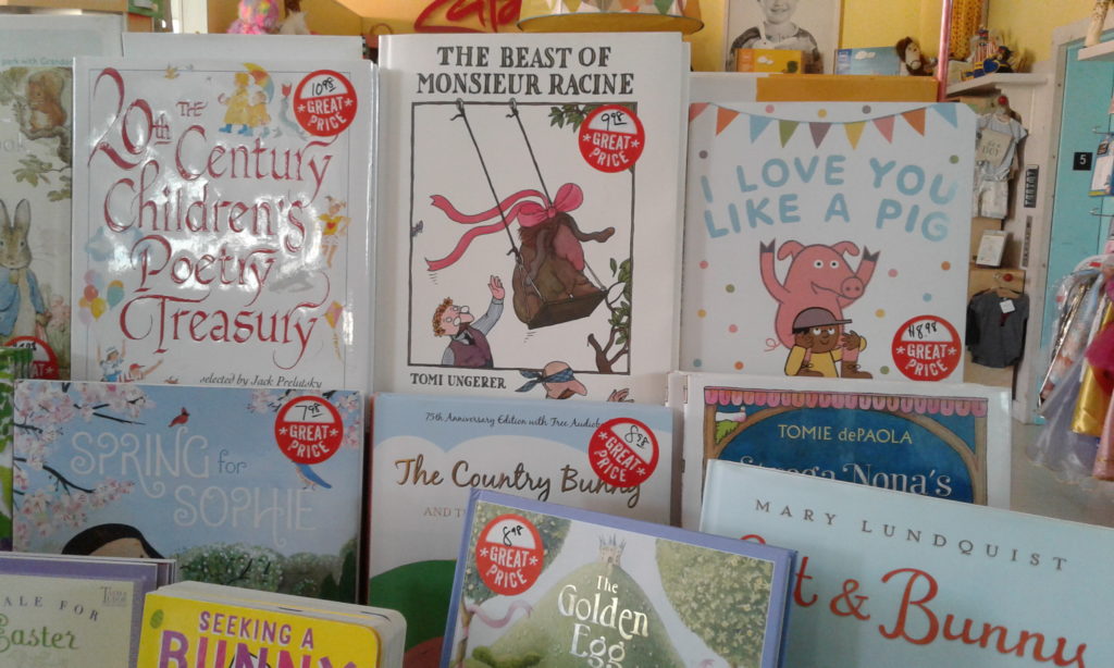 The text is basic and makes absolutely no sense. After all what does “I love you like a pig” even mean? And this time I cannot even enjoy Pizzoli’s illustrations. His Book Hog (while not my OMG FAVOIRTES) did work for the rest of the story. But this is not a surprise that this time I am not digging the art. I am hit or miss with his work to start with and this time the simplistic nature of them completely seals the deal on the “this book stinks” vote.