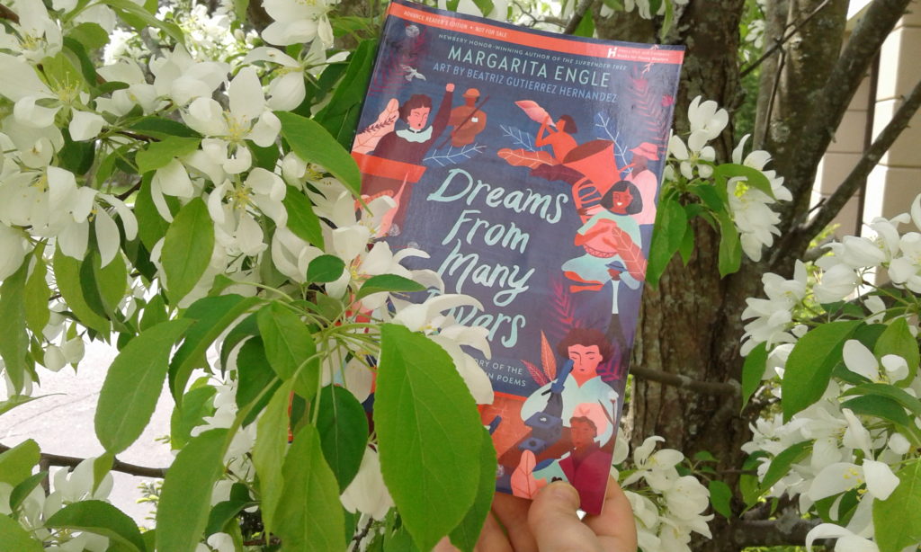 Dreams from Many Rivers: A Hispanic History of the United States Told in Poems created by Margarita Engle are romantic in places and always serious with her pride in her heritage. And while history tends to “lump” Spanish, Mexican, Cuban, Native and other “Hispanic peoples” into one group, Engle shows how each one is separate, how each interacted with the others how Moctezuma’s great-granddaughter could also be Cortez’s great-granddaughter.
