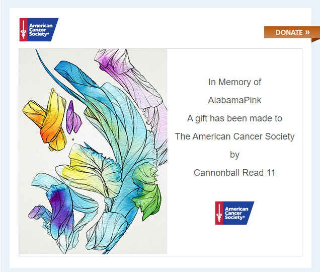 Thanks to all of you for helping Cannonball Read remember AlabamaPink and stick it to cancer, one book at a time!