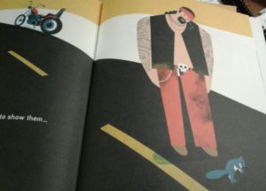 And Negley takes his humor and made Tough Guys Have Feelings Too. It is a cute, but not as fun, story as My Dad Used to Be So Cool. Yet, it is still a nice touch for the “Big Boys do cry/do have feelings/and can express them” theme. He tells how everyone, including ninjas, wrestlers, knights, superheroes, even daddies can be sad. The illustrations show even big tough bikers sad with the illustration that is not for everyone because it will answer this question: “Why did the squirrel cross the road?” (It didn’t). But it is a modern story with its own flair.