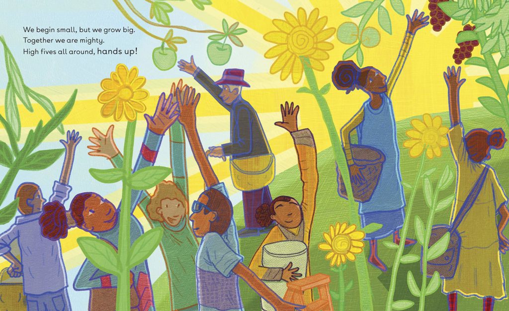 The afterwards by the author brings even more into play. She mentions that usually “Hands Up” is not usually a positive message currently. Yet, she wanted to show the ways in her personal life that “Hands Up” was positive and from a good memory and time. She shows you all the places you can put your “hands up” (church, while getting dressed, playing peek-a-boo, greeting the sun, reaching up to take someone’s hand when you have fallen and more).