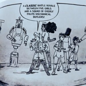 The Lumberjanes’ latest adventure begins when troop leader Jen takes the scouts on an orienteering lesson. Naturally, weird things begin to happen despite Jen’s plee for “no hijinks!” but the girls aren’t really to blame. Rather, their bizarre compass seems to be acting up, and the ‘janes start disappearing one by one, thrown into some sort of alternate void where they meet a cohort of robot butlers. EVIL Robot Butlers?!