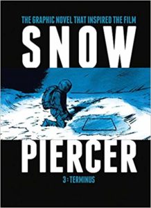 The ending to this mash-up trilogy is … hopeful? I guess? I’m not really clear what the overall point of the stories is other than our class structure is unjust and nuclear winter is something to worry about. When I purchased the set, the guy at the comic book store told me that there is a fourth volume, but it’s a prequel. I suspect it’s someone’s attempt to answer the questions I had about how this frozen hellscape was created but I just can’t bring myself to look into it. I also took a glance at the IMDb page for the movie Snowpiercer and I wonder what the hell happened, because the cast of characters is a bunch of names that don’t appear in ANY of the volumes! And none of the main characters from the books are listed in the film. Looks like writer/director Joon-ho Bong might have succumbed to the desire to just write his own damn story set on a train during the new ice age and call it Snowpiercer.