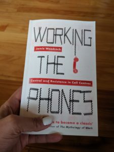The book looks at call centers in the UK and how organizing might be able to take hold there. In order to better understand the work, Woodcock didn’t just research it, he performed it, getting hired at a sales call center that peddled insurance. From that vantage point he was able to better understand the pressures and stresses in the center (sales targets looming large overhead, bonuses that management push as simple to obtain but that few ever get) and experience the little ways that the workers resist management attempts at exerting power over the workers.
