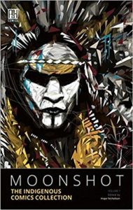 Moonshot: The Indigenous Comics Collection is indeed exactly as described on the tin. This collection of short comics and graphic stories come from indigenous authors and artists (including but not limited to those identifying as Métis, Inuit, Dene, Anishnaabe, Cree, Mi’Kmaq, Caddo, Haida, Sioux, and Suquamish), and largely focus on lesser-known stories and beings from indigenous oral histories. A main focus of the collection is to present these stories and characters in ways that differ from the too-common stereotypes that make up the majority of aboriginal representation in media.