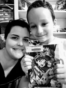 Pokemon X•Y is a brief manga series inspired by the video games of the same name. A tween came to my library and asked why I didn’t have any and insisted I buy them. So I did. Ha! for the library, not myself. When I read of the “two heads” task for Cannonball, I thought it would be fun to review these with a kid. I have never read a manga nor a Pokemon book. I didn’t know where to find the kid who demanded I buy them, but I knew my friend’s 6 (almost 7!)-year-old son Charlie was gobbling them up volume by volume. So he and I chatted Pokemon X•Y over dinner last night.