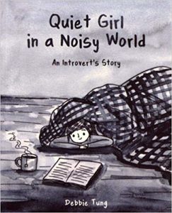 The lovely faintingviolet read this recently, and her review prompted me to immediately request it from my library. I am an extroverted introvert (I know it sounds like an oxymoron, but it’s true), and an INFJ on the Meyers Briggs scale, so when faintingviolet said that Debbie Tung’s Quiet Girl in a Noisy World hit all the right spots for her (an also INFJ and an introvert), I decided to give this a go.