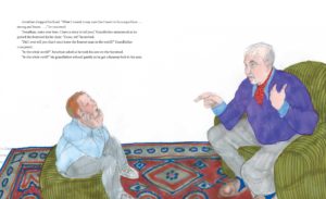 wonder if this is about a Jewish man in a concentration camp?” For some reason it had that feeling of how music can keep you free during great turmoil. But then saw the ship behind him, “Aaaah. A book about the Titanic.” (I still think a story of the Titanic fits that theme.)