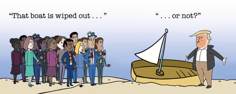 Whose Boat Is This Boat? Comments That Don’t Help in the Aftermath of a Hurricane has several clues why this is not a pro-Trump book. First, the cover is less than flattering (one fat, Cheeto dust covered face male) and second, it was created by The Staff of the Late Show with Stephen Colbert.