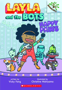 What does a reader do when they want something to read, but the brain has decided anything too taxing might overload the system (and by too taxing I mean something with over 100 pages…)? That is when I turn to my collection of early-chapter book readers. Ages first to young third grade can get their reading-on with something like Layla and the Bots V01: Happy Paws by Vicky Fang.