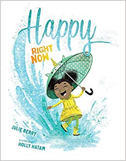 Happy Right Now is one of those books you need to be “in the mood” for. Its sweet sentiment can actually be overly sweet or just the right amount of sweet depending on how you are feeling. If you are in a “bad mood” this book could make things better by helping you practice the “live in the moment” message. And your mood will improve, and you should become a big fan of the story. However, if you are in that “nothing can make it better mood” (that is mentioned at the end) then this is really over-the-top and could probably make you not a fan.