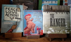The rhyming text helps move you along the colorful illustrations of Teague. We learn about the eight days and nights of Chanukah. Beginners and old pros on the subject can enjoy the facts about this holiday and see some of their favorite dinosaurs being silly. The names of the dinosaur on the page is hidden (but not hiding) near the dinosaur.