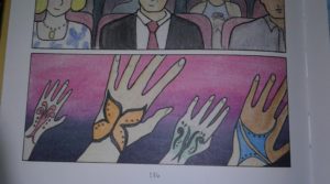 realistic either. The entire book feels as if it is a teenagers’ drawing book/diary. Yet, we see everything in Maggie’s voice, but from outside the story. This is a book you read and experience on your own level. You can find layers, or just a straight forward story of growing up and coming of age. It is not for the young or causal reader of graphic novels or young adult. At least 12 and up, but arguments could be made 14 to adult.