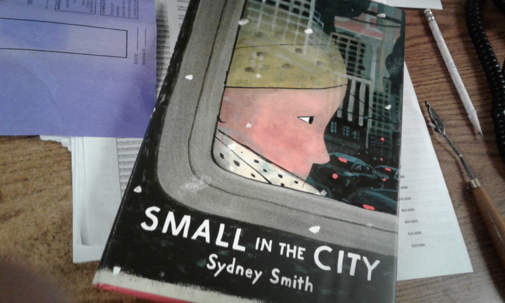 Be in the right mind frame when you are reading Small in the City. As, frankly, Sydney Smith created a downright depressing story. At first you think the narrator is talking to you the reader about how they, the narrator is small, and you the reader are small, too. Therefore, being in the city can be a scary thing if you are not used to it. Then perhaps you think maybe the child is speak to a bird, or even a homeless person due to the tricks and suggestions that are made (how to find a warm spot, who will help them). It is at the end you realize who the narrator is speaking too and learn the true identity of the creature being talked to.