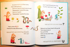 Al Pha’s Bet is a clever and unique way to teach the alphabet, with a heavy helping of humor. The main character is a gent named Al Pha. When the King wants to organize the newly invented letters into an organized format, Al makes a bet with himself that he can find a way. Amy Krouse Rosenthal and their characteristic humor splashes onto each page pushing you along to learn one possible reason how those 26 letters got int