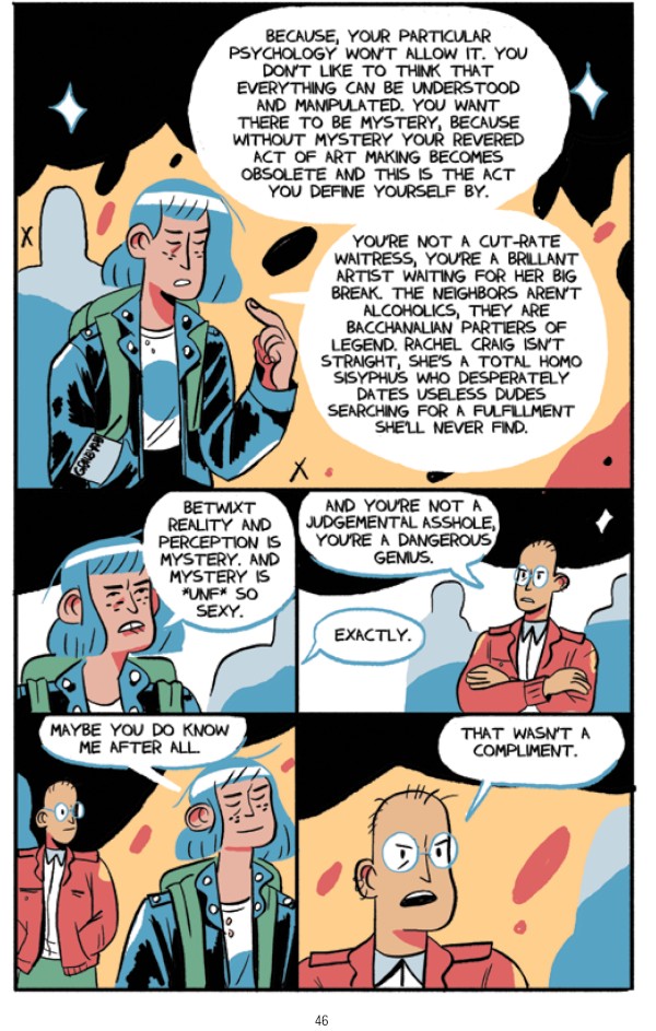 Yes, Caroline is a sad individual. They are never full as their friend Trevor said. They will always want more. They could write the Great American Novel. NAY! The Great WORLD Novel and still want to write the GREATER World Novel. Yet how will they when they are always trying to sabotage themselves? Caroline has a horrible father. Mother, too, really. Their friends are selfish by selling out by getting a job (I mean who needs food, rent or stability?) And why should Pen be happy with Shiloh? Leaving Caroline outside their circle of love? So of course, Caroline is pure in her loathing of everyone.