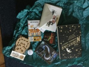 Not sure why the picture is upside down, but take note an d be jealous of my cool stuff thanks to Lumenatrix! This book is on my TBR list and will make for fine holiday reading😁 Thank you!!