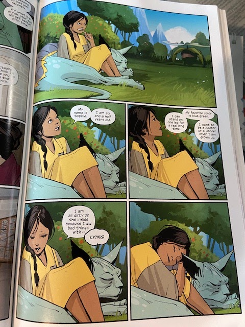 But I think perhaps the single best page in the entire issue is when Slave Girl — now renamed by The Will as Sophie — chats with Lying Cat (who is one of my favorites).