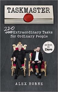 Taskmaster is a game show from the UK in which five comedians compete against each other in contests, or “tasks”, set for them by the show’s hosts, Taskmaster Greg Davies and his assistant, (Little) Alex Horne. Though he portrays the servile assistant on telly, Horne is actually the creator of the show and the mastermind of most of the tasks. In this book he briefly gives the history of the show and some behind the scenes secrets, but the main point is the tasks themselves.