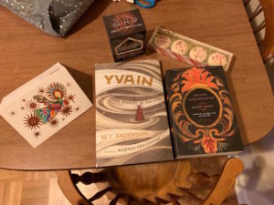 Thank you to my fellow Ellen! I’m so excited to try the treats and to read Yvain: The Knight of the Lion! PLUS to have my own copy of the Kristin Lavransdatter trilogy. . . *sighs with happiness* And look how cutely everything came packaged! Thank you, thank you, thank you, and happy holidays!