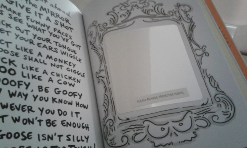 If you like Kimmel, you will want to read this book about a narrator who tells the readers that the main character is a very serious goose. So serious in fact that nothing will make it laugh. Oh, you can try, they even provide a mirror in the middle of the book (attached to a page so it is the page, therefore not a real mirror) to make silly faces in. Of course, at first, everyone thinks it did not work, but of course it did. The goose starts giggling and running around in tighty whiteites and flying off with one rubber boot on a web foot. All the while making a goofy face of their own. With the celebrity endorsement, this book is getting much attention and people will be interested in it. I am not sure, however, if I would give this to a child, even though it is aimed at the at least four-years-old to about eight-years-old. You could go slightly older due to Kimmel’s name and a person is a fan) and for the reluctant reader (large and bold type can make it easier to read for some). The biggest complaint I have about this book is the minimalism of everything, except the text. There are pages that are only text. The whole package was burdensome for me. With that said, as with any book, the right reader will be quacking up. Plus, proceeds from sales of The Serious Goose will be donated various places, therefore it is for a good cause. |