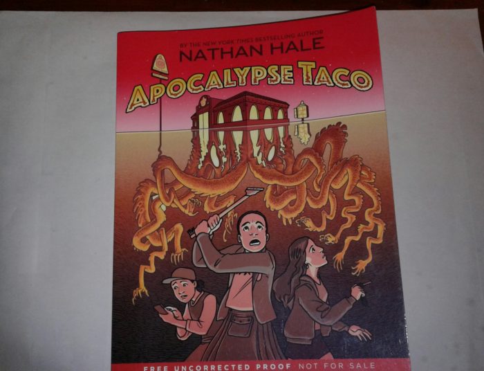 When I first saw the cover of Apocalypse Taco, I was wondered if it was going to be a mystery or a cultural coming of age story. I never expected mutant tacos that replicate cars or a multiple armed and legged person who is besties with a tooth monster. Never having read Nathan Hale, I had no idea what to expect. But then again, I did not expect mutant bee-squid creatures or alien dimensions. But, of course, neither did our main characters, 11-year-old twins Axl and Ivan and their 16-year-old-just-got-her-license driver, Sid.