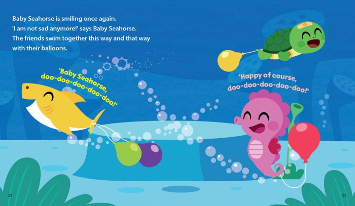 Pinkfong has created just a simple story about Baby Shark being bored as they cannot locate their friends. But of course, there is more to it than that. Baby Shark finds a special way to amuse themselves (with balloons) and not only that, they find a way to find and help their friends along the way, too. Your toddler and early reader will have fun listening to and reading about friendship and it is Baby Shark. And the best part? You will not want to scream over those lyrics. Or lack thereof.