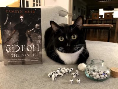 The story reads kind of like a game of Dungeons and Dragons. There are necromancers and cavaliers (their sworn protectors) from the other seven houses, so lots of potential competitors and allies. There are puzzles to solve to get clues to Lyctorhood. There are mysterious deaths to solve. Harrowhawk makes Gideon pretend to have sworn a vow of silence to hide the fact that she’s not a real cavalier (she was forced to fill in as a Plot Device), so it’s delightful to watch her half to hide her snark and indignation about…pretty much everything.