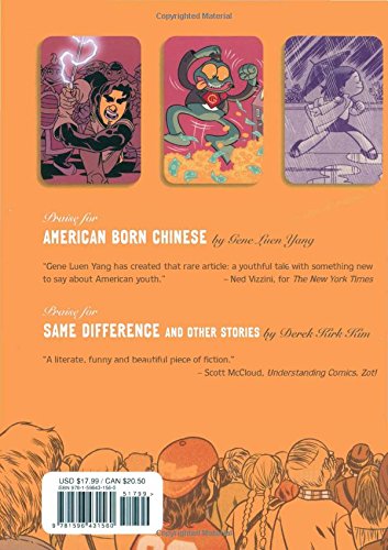 But the authors and illustrators switch things up. Gene Luen Yang and Derek Kim shows you that what might seem real, might not be as real as you think. One frog’s money is another frog’s tranquil pond and one woman might not be as gullible as you might think but might be devious. At least two of the three stories have a more “finding happiness with spiritually” take and the other “finding happiness” takes on a more fantastical reality. Each story has a different style of art to match the theme. The first is almost realistic, you can see the stereotypes of hero, princess and monsters. The second is Mad Magazine, comic book colored and format. The final a dark, innocent old school-meets modern. Color is used (or not used) to accent points and to show importance.