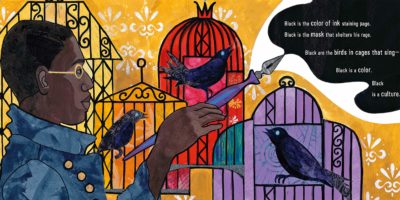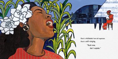 The narrator speaks about how black is not like the other colors of the rainbow but has its own rainbow of tones. Black is a color that is not just a color, but it is peace, love, being proud and it is the wheels of bicycles around us, it is the robes on Thurgood Marshal’s back, it is songs, it is words, it is so many different things. Black is as poetic as the text is. Famous people are seen and mentioned who have shaped black culture. This is a book that is, frankly, proud of who it represents and what its mission is.