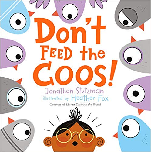 This catastrophe is illustrated with cartoonish illustrations by Heather Fox. Fox’s signature colors, drawing and work fills each page. Fox and Stutzman are the illustrator and author of the book Llama Destroys the World, which I disliked a lot. And Stutzman is the author of Tiny T. Rex and the Impossible Hug which I seem to remember reading, but sadly, not memorable. Therefore, these two are not my Top Ten Favorites. However, Don’t Fee the Coos! was more likeably than Llama.