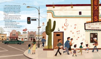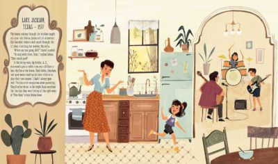Due to the picture book format the older child, which it is aimed at, might be turned off but it is a great book for probably up to 10-years-old (though a young 10). Might be a hard read-aloud for the younger crowd, but the set up allows for a page a night reading. There is little traditional action, Lopez shows with their text that Selena designed clothes, her brother wrote songs, etc. There is no “action” where there are “car chases” or “danger” to keep you moving. Perhaps, it might make you interested in learning about her music (as I learned a few things about her: I was unaware she spoke little Spanish so she memorized the songs, many awards and honors came after her death and even one of her most popular songs was released also after her death. Plus, how much she missed out on due to her starting her career at such a young age. She did not even have her Quinceanera).