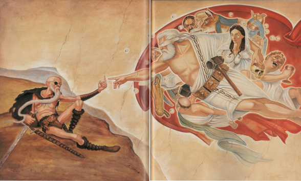 Actually, let’s talk about the illustrations. I wasn’t sure what to expect from an illustrated Discworld book. They’re often so absurd, it feels like a very hard task to try to capture the tone, which is often many things at once. But Kidby did it! His illustrations are gorgeous, first of all, especially the ones with the views from space, and involving the turtle and the four elephants. And they manage to capture the spirit of the characters, who always take themselves incredibly seriously, even as everything they are doing is patently ridiculous, and then he managed on top of that to also capture that constant feeling of sadness and anger that often permeates Pratchett’s work. I had a hard time not skipping ahead while I was reading, just to look at the pictures.