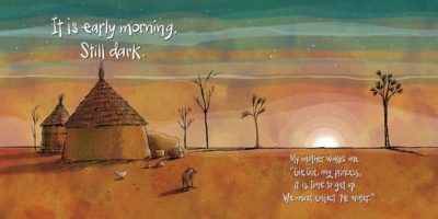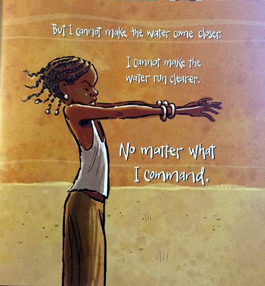 The story, despite the tragic nature of why they must, this is a sweet story about a young girl and her hopes and dreams. She still finds ways to be a child, while having to take on the adult task of water gathering with her mother. And Peter H. Reynolds created equally sweet illustrations to help curve the intense sadness. He shows these people in a realistic but fun way as well. He shows the hope and dark. The colors fit the world perfectly. Classically Reynolds, these illustrations are a delight to view.