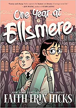 Now, onto the graphic novel. No parents/grandparents/teachers/other adults buying books for your child, a graphic novel is not “easy” or a “comic book.” It is a book that happens to have pictures to move things along. And the First Second publishers hit those stories on the head. No matter what you pick up you will find something that will amaze and delight. The great thing (but one you need to watch for) is that they do books from beginning readers to very Young Adult. But one that fits the 10 to 14 range (and could go younger for the stronger reader) is One Year at Ellsmere by Faith Erin Hicks.