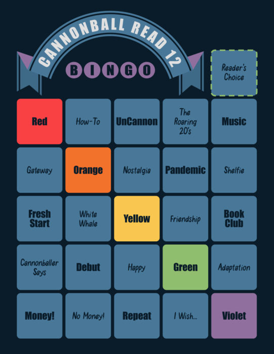 Welcome to the 2020 Book Bingo Reading Challenge, we are delighted to bring it back for a third year! Select five squares across, down, diagonally, or 5-up (four corners + center square), and get an entry into a drawing for some cool prizes. Complete the entire card – a blackout! – and get 15 entries into our drawing. Download your game card below, and post your reviews tagged with cbr12bingo for chances in our prize raffle. You can ask questions, ask for suggestions in the comments below and in the monthly check-in posts. You can also ask for suggested books and clarifications in the comments here, the check-in posts, and in the Facebook group Cannonball Read Book Chat.