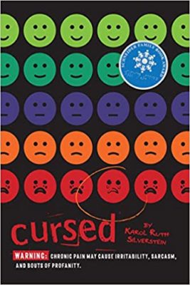 And I was glad that Cursed by Karol Ruth Silverstein was not only an eBook but free as I would not have wanted to sacrifice a tree for it or paid for physically “nothing.” While the ending has a few pieces that saved a very bumpy and cliched beginning, there was nothing to it. Our main character Ricky is flat. She starts off as whiny and “Poor me! Why do I have this illness?” And while what she does and feels is believable, she was unsympathetic. She repeats herself; she gives her doctor and principal unflattering nicknames and reminds you of that every time she mentions them. She reminds you of how she likes to swear. “Jokes” are repeated (Dr. Dad is not a doctor-doctor, but a dentist). And she’s always reminding you how horrible her parents are towards her (they won’t let her have the latest new phone). This whine-fest gets old. Silverstein also seems to “drop things in” for “shock value” or to give information that could have been given less obviously.