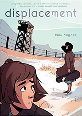 Displacement by Kiku Hughes was not a perfect read for me. As much as I loved this book, I needed a bit more. It is a beautiful story about family, history, culture, love, hate, fear, memory and never allowing it to happen again. There is minimal art and text but they are full and complete. They are perfectly fitting the message/story. The story does not pull punches; you know what is going on. But also, is not “in your face” allowing it to be adapted to most ages. I would feel comfortable giving this to as young as 10 (who is a strong reader) and all the way to adult. However, as there is a death mentioned and Kiku finds a bit of love with another female prisoner, the more sensitive reader might not be the audience. (Therefore strong 10 to 15. And of course, adults.)
