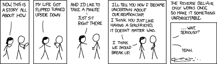 If you aren’t familiar with xkcd or Munroe, allow me to leave you with my favorite of his comics. This strip is one of my favorite comics of all time. I reference the “Reverse Bel Air” on almost daily basis: