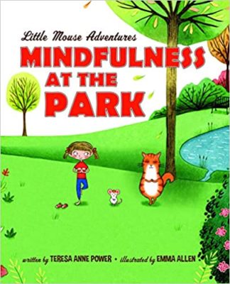 And if you are looking for cute and are into yoga and wish to introduce it to your child, try Mindfulness at the Park which is part of a series of books that started with Yoga at the Zoo. Both are by Teresa Anne Power. In this second book, staring Little Mouse and friends, we continue with the idea of mixing yoga and mindfulness to help children (along with Little Mouse and the other characters) deal with situations that might be difficult for them. Emma Allen illustrations are cute. They are minimal details and colors but fit the calming effect that is wanted. Again, perhaps a bit too sentimental for my tastes, but I do like the fact that “breathing” is used as well as “mindfulness” and “meditation.” I always say, “I can breathe, but meditation is hard.” Even though it really is the same thing. It is just the words and their connotations.