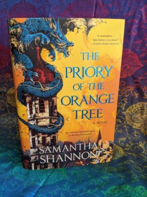 The Priory of the Orange Tree was the featured speculative fiction pick of the month by Mysterious Galaxy when it was first released. One of the booksellers, who is a huge epic fantasy fan, was eagerly waiting to read it because it’s the type of fantasy that has appendices. At the time it came home, I didn’t have space space in the TBR. However, it was the perfect fit for the orange square, which gave me the push to read.