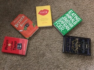 It was hard for me to make this my Violet square since I bought this on Ale’s recommendation (and their review photo shows the purple in the cover much better than mine – VS Ramachandran’s The Telltale Brain would have made a prettier rainbow, but we’re getting down to the wire and I can read fiction faster than nonfiction in most cases, so needs must). I was almost as charmed by the book as Ale, but I have to admit it was a slower burn for me (although I read it as quickly).