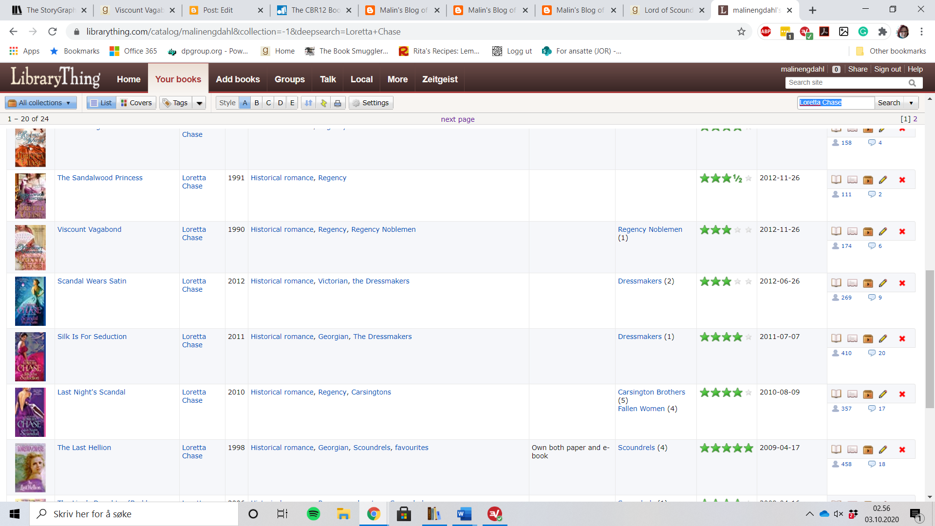 Checking my records, I actually bought this e-book back in 2012 (when I was still discovering Ms. Chase’s back catalogue) and it’s been sitting on my shelf ever since. I could have used it for the White Whale square, but it’s one of those books that I’ve had for so long, I’d more or less forgotten about it when I was planning my Bingo Card. It did, however, fit in my Alphabet Soup reading challenge for V, and once I looked it up on LibraryThing, I was surprised at how long it had been on my digital shelves, unread. It’s not exactly easy to take a photo of a digital book, but here is a screenshot of the LibraryThing shelf – which is the best I can do to fulfil the demands of the Shelfie square.