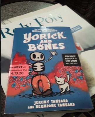 You must have a certain type of humor to understand some of Yorick and Bones. The Shakespearian references can be amusing, but not always easy to read. I have a very basic knowledge on the subject; therefore, I was able to see the humor/joke and able to read the parts that are more “Shakespearian language” in nature. Yorick themselves only speaks in that “old English/Shakespearian” (to a point) which is where the humor comes from. However, it is modern enough to keep today’s reader not confused. Due to this unique format, obviously this graphic novel is not for everyone. However, it is quirky enough to be make kids want to find out if Yorick learns about true friendship and if he learns about his situation. Most kids aged 7 to 10 can solo read, where younger children could be read to.