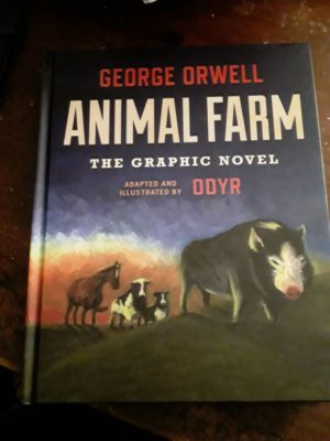 Considering the hype behind the novel, Animal Farm by George Orwell, and my love of graphics novels, I think I put too much pressure on this book, Animal Farm: The Graphic Novel adapted and illustrated by Odry. There is not much I can say about the theme of the book that hasn’t been already said (the animals of Manor Farm, in a coup, take over the farm and makes it Animal Farm. Here all animals are equal. Or are they?) At the time, this must have been a real “slap in the face” of people. And, sadly, we are still seeing parallels.