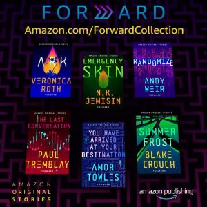 Amazon’s Forward collection, a group of five short stories from some big names, throw some big ideas out into the universe and let you, in a way, choose your own adventure! I suppose there is a “correct” order in which to read these, but I didn’t bother. I don’t think my experience suffered from it, other than the fact that I read what was clearly (and not surprisingly) the best piece first: N.K. Jemison’s Emergency Skin. Being the racoon that I am, I then just grabbed whichever cover caught my eye and set myself upon devouring these stories in one sitting- which was the point! This collection was created to be a bite-sized collection; like a spread of sci-fi tapas as opposed to a three-course space opera. All of these stories are also available with audio narration, but I only listened to You Have Arrived at Your Destination– which was also the last of the collection for me. David Harbour narrated (all of the adaptations have recognizable names) and he was great! He sounded so much like William Hurt, I was absolutely entranced.