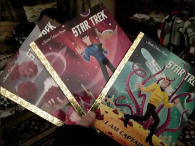 I Am Captain Kirk (Star Trek) by Frank Berrios (author) and Ethen Beavers (Illustrations)If you have a Star Trek fan, this Golden book (along with others) is the perfect addition to their collection. Yes, they are aimed at the Golden Book crowd, but the nostalgia element alone makes it perfect! We get a basic introduction to our Captain and see all the favorites of the original TV series