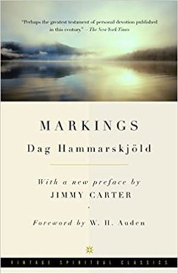Markings is a diary of sorts, a collection of the thoughts of Dag Hammarskjold, the highly esteemed second Secretary General of the United Nations who died tragically in a plane crash while on a peace mission to the Congo in 1961. Hammarskjold came from a wealthy and privileged Swedish family. His father had been prime minister, and Dag held a series of important government posts in Sweden before entering the international stage after WWII. He became Secretary General of the UN in 1953 largely because Russia and the US imagined he would be a pliable unassuming bureaucrat. They were in for a quite a surprise. Yet Markings does not address Hammarskjold’s public service or achievements. This is an introspective book that reveals how one of the world’s most influential and respected men was often lonely and depressed as well as being a deeply spiritual man constantly striving to serve others as God would want him to.